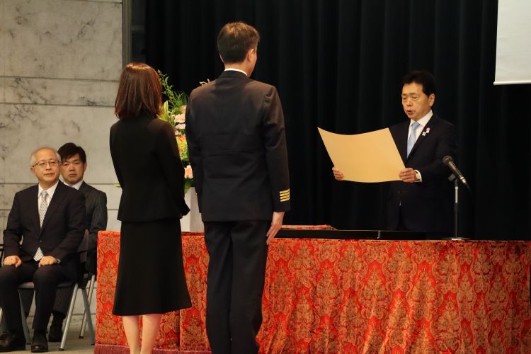 今回の大臣表彰式では、水嶋智次官が大臣式辞を代読し「航空輸送は、国内・国際線ともに、観光やビジネスを始め、地域経済や国際交流を支える重要な社会基盤。これもひとえに受賞者はじめ関係者の尽力により、航空に対する信頼が築かれてきた賜物。本年は、乗員・乗客550名の尊い命が失われた日本航空123便墜落事故から40年の節目の年。航空行政を所管する国土交通大臣として理想の安全確保の重要性を再確認するとともに、二度とこのような痛ましい事故を起こしてはならないとの強い決意を新たにしている。本日、表彰を受けられる皆様におかれても一層の緊張感を持って航空輸送の安全確保に取組み、航空が広く国民に親しまれる交通機関として一層の発展を遂げられることを期待している」などと述べた。
