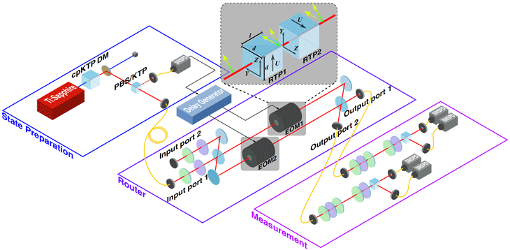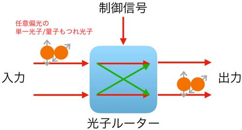 このルーターは、偏光状態によらず光子の位相を制御する電気光学素子や、既存の光学干渉計を変形させたユニークな構造をもつ光学干渉計の開発によって実現。量子ネットワーク内での量子もつれ光子の高精度な伝送経路切り替えや、全光学的な量子メモリ技術への応用などが期待されるとしている。