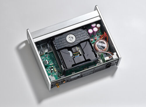 ベースとなるCDトランスポート・メカニズムは、放送局で⾧年の実績を誇るTEACの「CD-5020A」を採用。この耐久性と信頼性に優れたメカニズムをベースに、セミフローティングマウント構造やReference500シリーズ専用の駆動回路を組み合わせることで、更なる高音質を実現した。10MHzの外部クロック入力にも対応し、マスタークロックジェネレーターCG-10M-Xを接続して音質をアップグレードすることもできる。