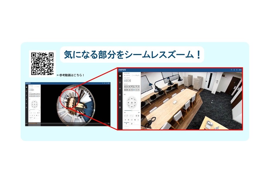 ・360°パノラマ画像を自由に展開表示!シームレスズーム機能で、詳細を確認したい部分を簡単に拡大することが可能。