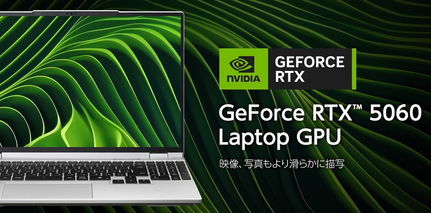 「DAIV S5-A7G60SR-A」はAMD Ryzen AI 7 350 プロセッサ、NVIDIA GeForce RTX 5060 Laptop GPU、16GBメモリ、500GB NVMe M.2 SSDを搭載して239,800円(税込)より、