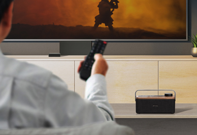 Bluetooth接続に対応しており、テレビ音声のほか、スマートフォンやタブレットの音楽も高音質で楽しめる。テレビ音声とBluetoothはワンタッチで切り替えが可能。