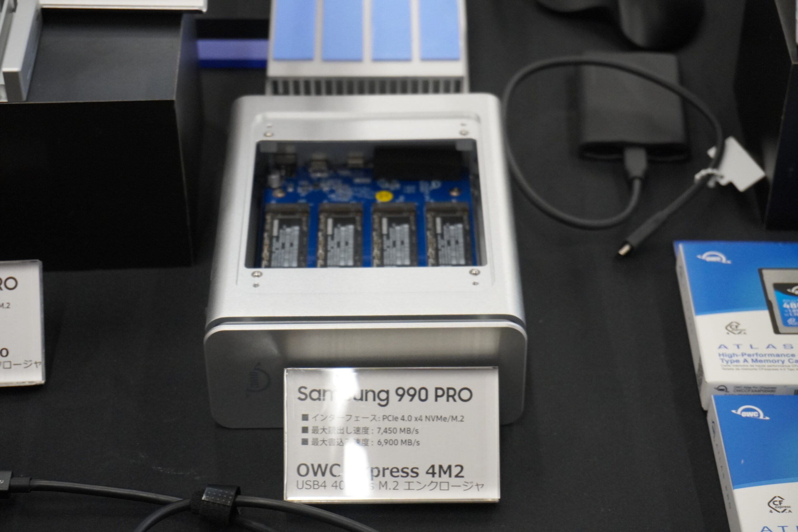 日本サムスン販売特約店であるITGマーケティングは、Blackmagic Cinema Camera 6Kをはじめとした、USB―C接続でSSDに直接収録できるカメラを複数展示するとともに、ロケ収録におけるiPhone活用術として、機能的なリグとSamsung SSDを組み合わせた撮影システムや、最新のThunderbolt 5インターフェースを活かした超高速ストレージ製品も展示した。