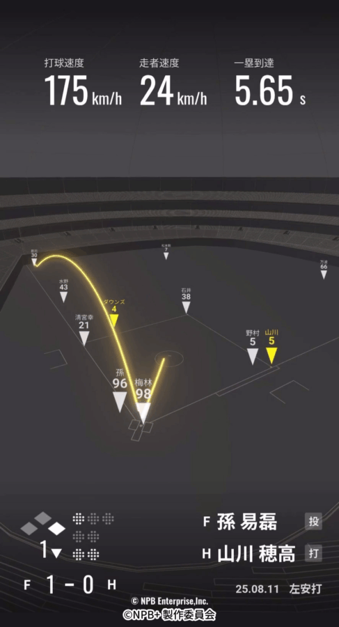 『NPB+』のテスト配信では、ホークアイのトラッキングデータを活用した一球速報やリプレイ映像など、機能の一部を楽しむことができる。