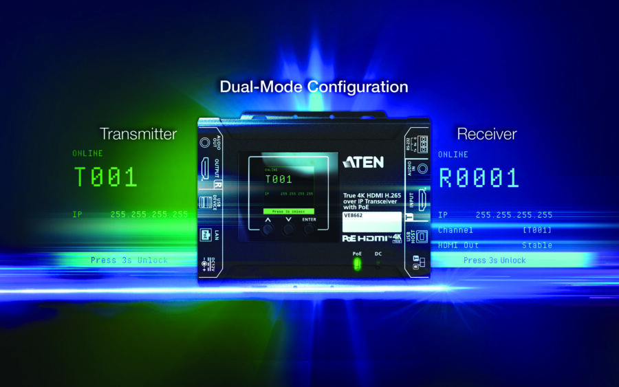 鄧社長 2025年の新製品として大きな注目を集めたのが、ビデオエクステンダーの「VE8662」です。4分割での表示を可能とし、PoEに対応し、電源ケーブルが不要で、LANケーブル1本で接続と給電が可能です。また1台で「トランスミッター」と「レシーバー」の両モードを切り替えて使用できるため、従来必要だったペアで製品を用意する必要がなくなりました。旧来モデルと比較して約20%超のコストダウンを実現しつつ、機能面は大幅に強化しています。