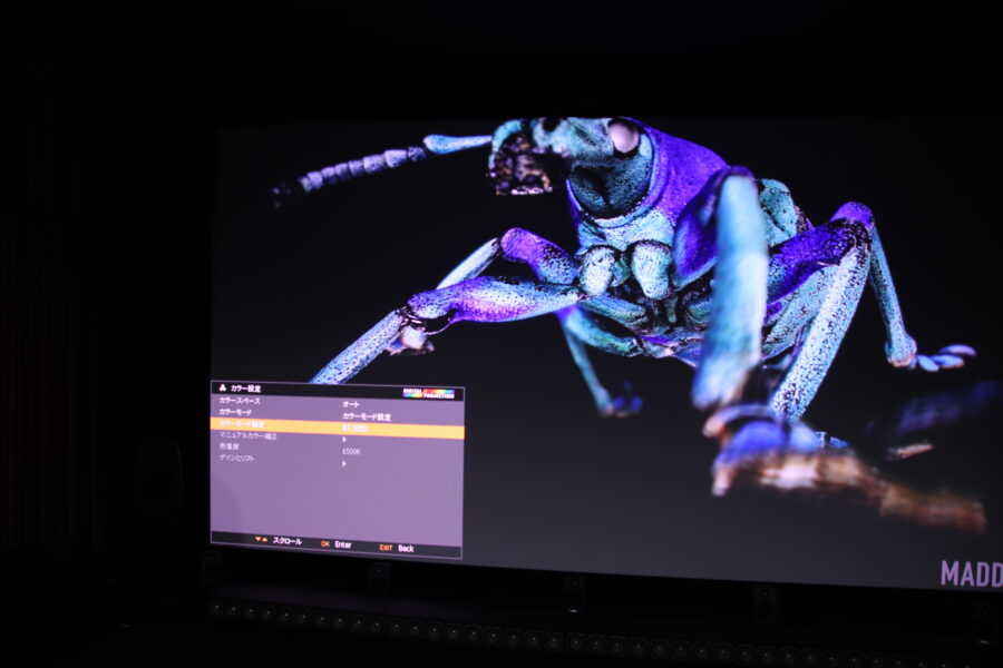 しかしこのプロジェクターはRGB独立レーザー光源を採用しているため、こうした色域の端の色までしっかり再現することができるという。