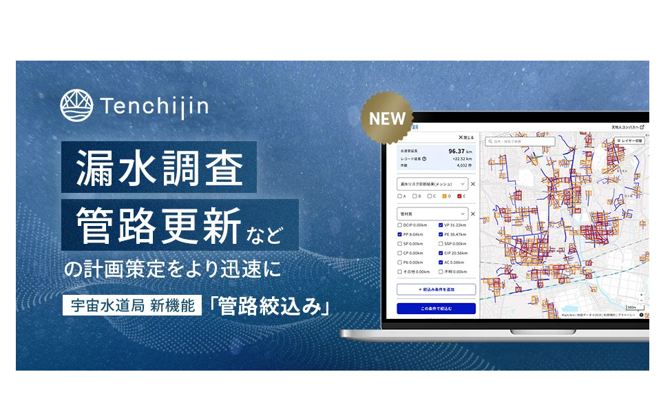 天地人、漏水調査や管路更新などの計画策定をより迅速に。宇宙水道局に新たに「管路絞込み」機能を実装