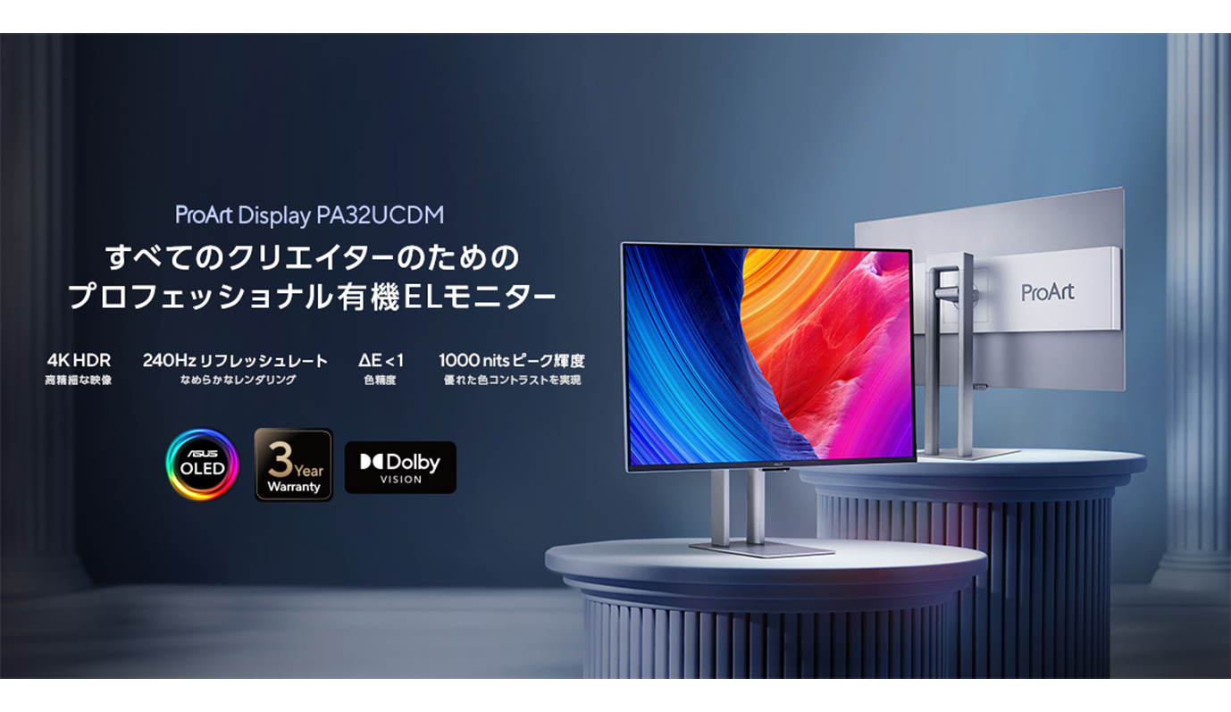 ASUS、コンテンツクリエイター向けに設計された32型4K 量子ドット有機EL 240Hz、最大1000ニットのピーク輝度を備えた「ProArt Display OLED PA32UCDM」が発売開始
