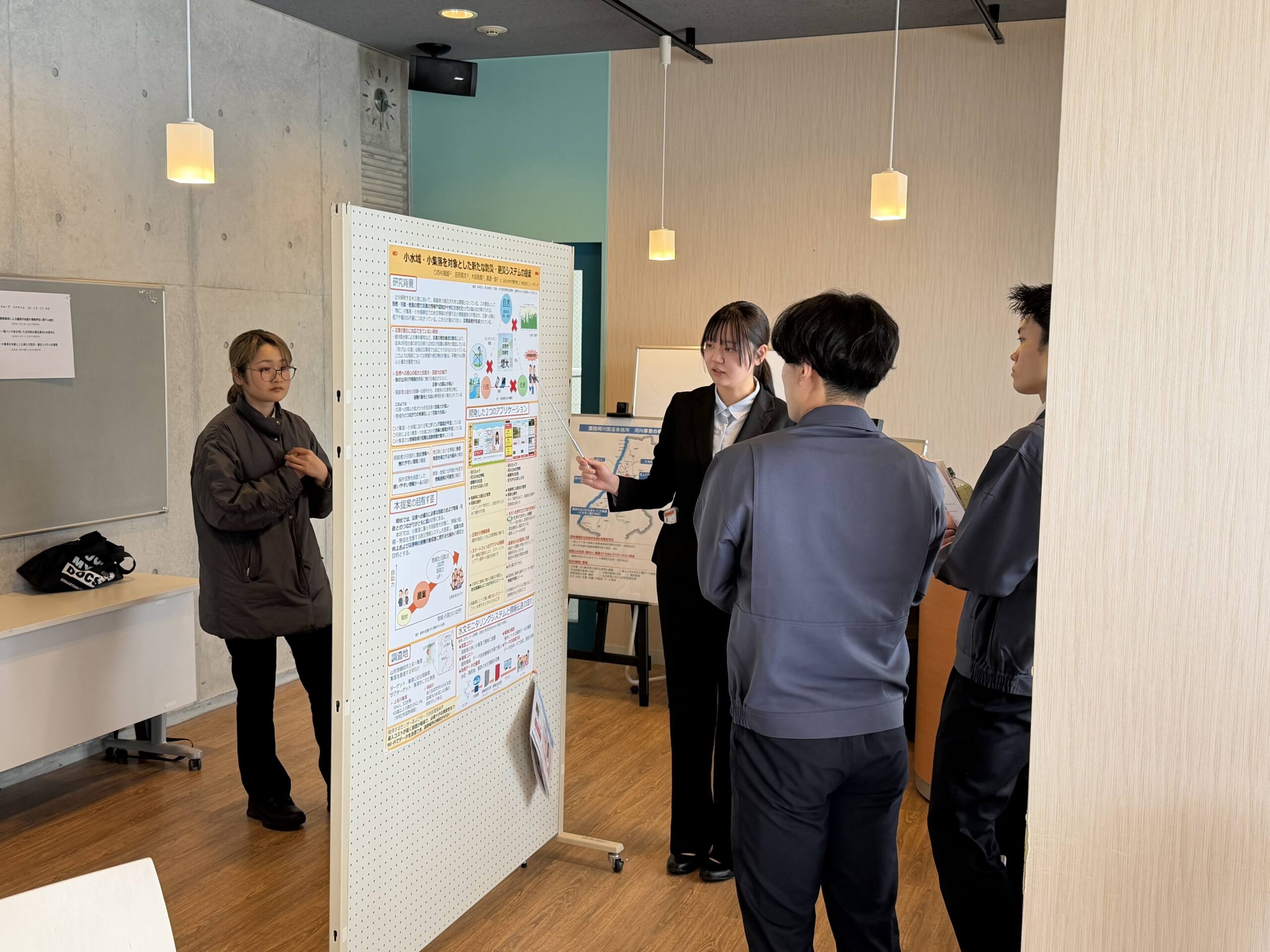 同研究室の渡邉一哉教授と、アプリの設計・デザインに携わった学生がポスターセッションにて発表した。現在、同大農学部のある山形県鶴岡市内に水位/気象センサーを設置していることから、2026年春を目途に同市内で運営実験を始めるとしている。