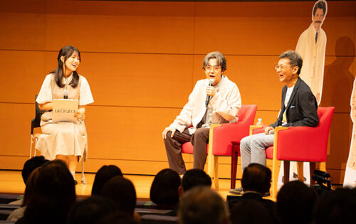 『ばけばけ』は、松江の没落士族の娘・小泉セツと、ラフカディオ・ハーン(小泉八雲)をモデルに描かれる物語。会場には、ゲストとして、主人公・松野トキの父親・松野司之介役を演じる岡部たかしさんと、小泉八雲のひ孫で小泉八雲記念館館長の小泉凡さんが登壇した。司会はNHK松江放送局の大村広奈アナウンサーが担当した。