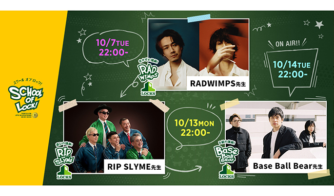 TOKYO FMをはじめ、JFN全国38局ネットで放送中の10代向けワイド番組「SCHOOL OF LOCK!」が今年10月に放送開始20周年を迎える。この記念すべき20周年イヤーの10月、かつて番組で10代のリスナー(生徒)と向き合ってきたレジェンド講師陣が「生放送教室」に再登場する。