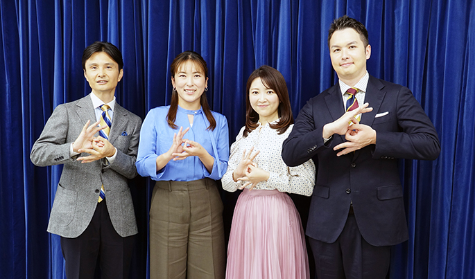 【写真(左から)北野剛寛アナウンサー、後藤佑季アナウンサー、千葉美乃梨アナウンサー、池間昌人アナウンサー】