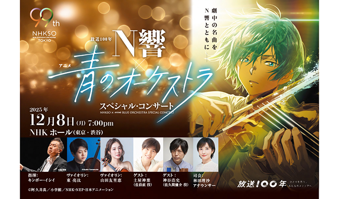 NHK交響楽団(N響)と人気アニメ「青のオーケストラ」がコラボするスペシャルコンサートが12月8日、東京・渋谷のNHKホールで開催される。また、このイベントの模様が2026年の年明けにEテレで放送されることが発表された。