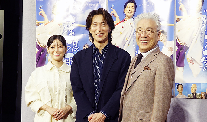 NHKはこのほど、2026年1月4日からNHK BSとNHK BSプレミアム4Kで放送するBS時代劇『浮浪雲』(全8回)の取材会を東京・渋谷のNHK放送センターで開いた。会見には、主演の佐々木蔵之介と倉科カナ、イッセー尾形が登壇し、ドラマ化への思いや撮影現場の裏話などを語った。