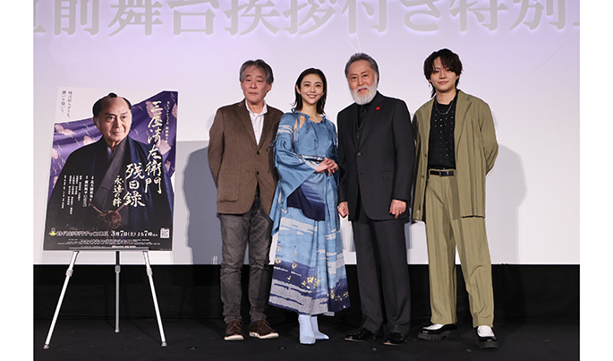 CS放送・時代劇専門チャンネルを運営する日本映画放送(東京都千代田区、宮川朋之社長)は2月19日、作家・藤沢周平氏原作の人気オリジナル時代劇シリーズ第9作「三屋清左衛門残日録 永遠(とわ)の絆」の舞台挨拶付き特別上映イベントを東京・有楽町のTOHOシネマズ日比谷で開催した。会場には、主人公を演じる北大路欣也をはじめ、若き夫婦役の佐藤流司、山谷花純、そして山下智彦監督が登壇した。