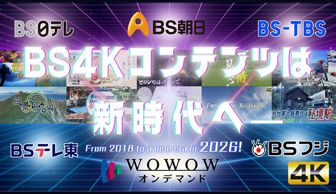 BS民放5社(BS日本、BS朝日、BS-TBS、BSテレビ東京、ビーエスフジ)とWOWOWはこのほど、2026年秋(予定)より、BS各社が制作した4Kコンテンツを、WOWOWの動画配信サービス「WOWOWオンデマンド」で無料配信すると発表した。