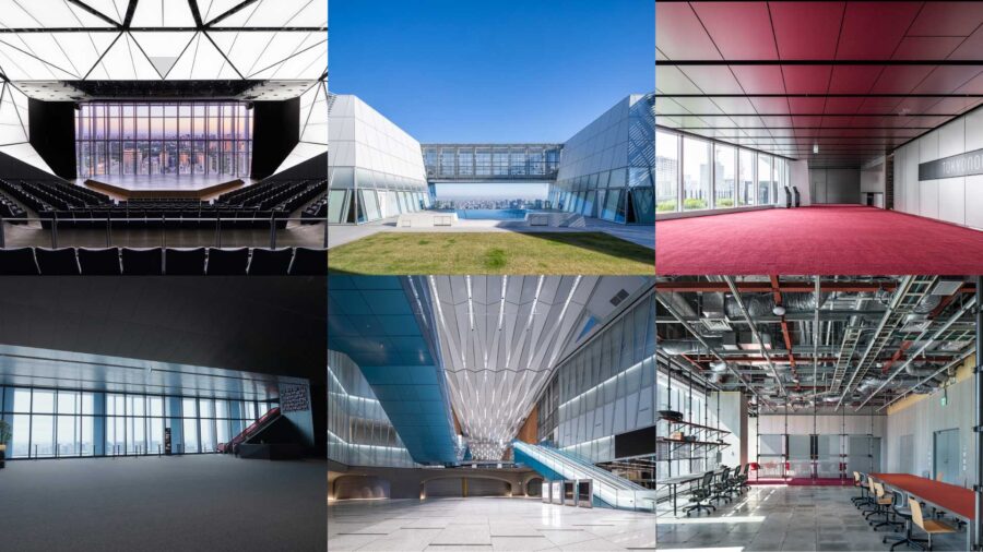 B2階 ステーションアトリウム・虎ノ門ヒルズカフェ/8階 TOKYO NODEエントランス・TOKYO NODE LAB・TOKYO NODE CAFE/45階 TOKYO NODEアライバルホール/46階TOKYO NODE HALL/49階 TOKYO NODE SKY GARDEN & POOL