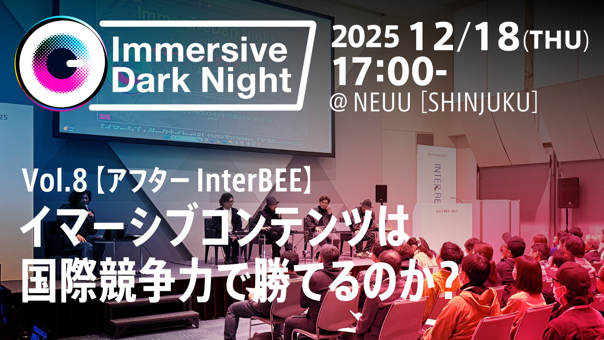 IPUT東京国際工科専門職大学 工科学部 デジタルエンタテインメント学科 渡部健司研究室 MIRAI LABO.とコンセントは、12月18日(木)イマーシブダークナイト vol.8「「アフターInterBEE:イマーシブコンテンツは国際競争力で勝てるのか?」を開催する。