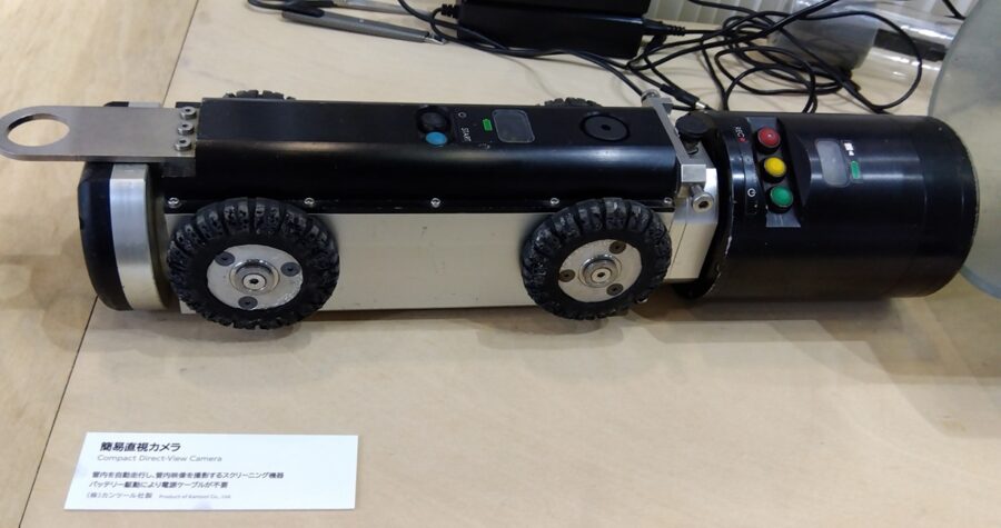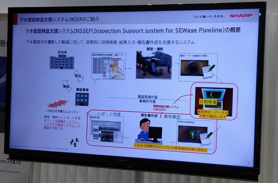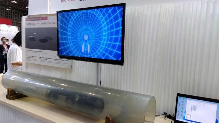 ・下水管などの管路検査の効率向上を支援するシステム。ロボットが管路内を移動、撮影した動画をもとに、目視検査や結果入力、報告書作成などを支援する。今年は埼玉県加須市の道路陥没事故で「下水道検査」が注目された年でもある。当社では、このような実機やソリューションなども提供可能だ。