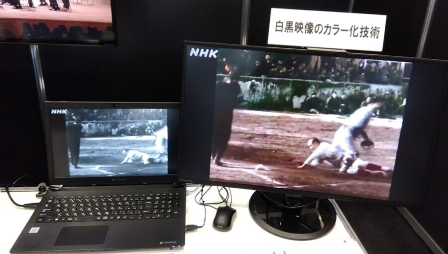 「白黒映像のカラー化技術」は、白黒フィルムなどの白黒映像コンテンツを、AIを用いてカラー化する技術。特長は、同じシーンにおける色ブレの発生を抑えることができる。カラー化した映像の色を部分的に修正も可能。AIによる自動着色により、白黒映像コンテンツを短時間でカラー化することができる。