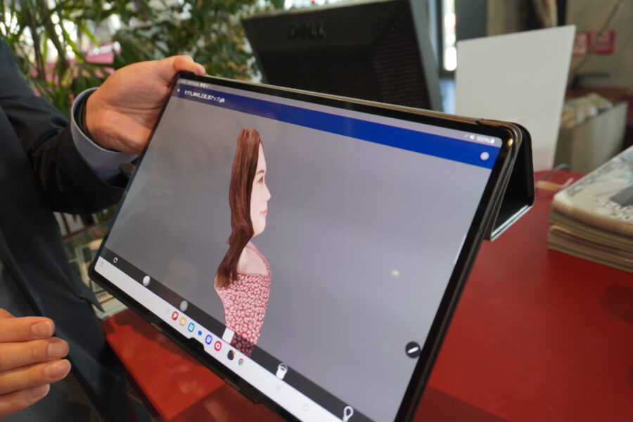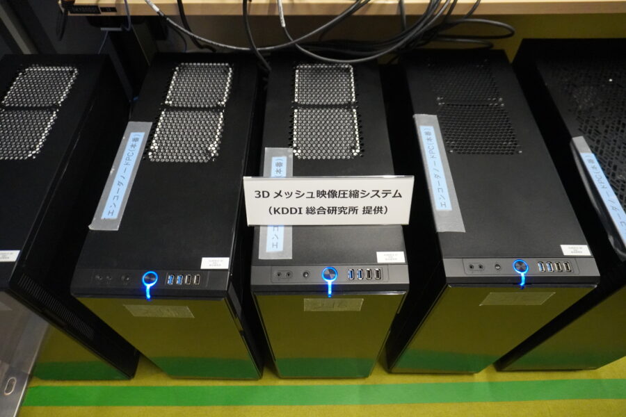 プレスツアーでは、スタジオにスタッフが2名入り、楽器を演奏したり、踊りを踊ったりする模様を撮影し、3Dデータに変換され、さらに3Dメッシュに変換される。この処理はKDDI総合研究所の3Dメッシュ映像圧縮システムが用いられている。さらに、Wi―Fiでプレスツアー参加者の端末(スマホ)に送られ、映像を見ることができた。端末に表示されたスタッフを自由に角度などを動かすことができ、背景も変えることができた。レスポンスもスムーズであり、遅延は感じることはなかった。