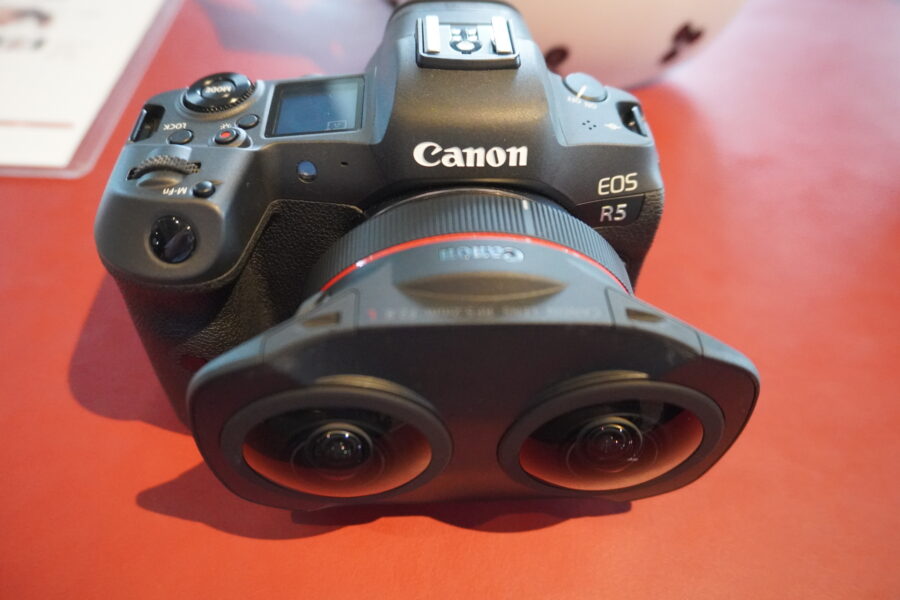 キヤノンは「EOS VR SYSTEM」を紹介した。同システムは、専用の交換レンズとEOS Rシリーズの対応カメラで構成され、アプリケーションで3D VR映像を効率的/高品質に制作できる。