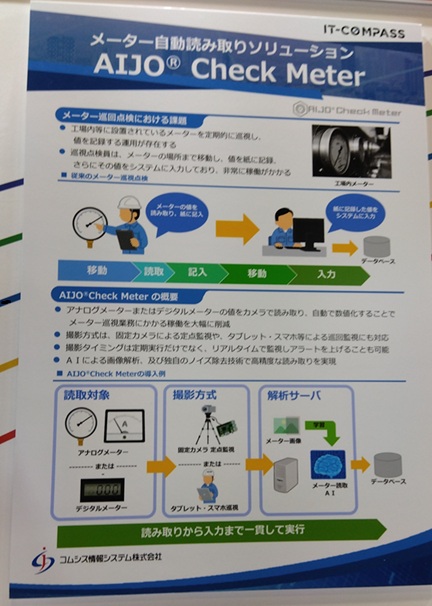 「AIJO®Check Meter」はアナログメーターまたはデジタルメーターの値をカメラで読み取り、自動で数値化することができる。それにより、メーター巡回業務にかかる稼働を大幅に削減できる。最大のメリットは導入経費のコスト面。メーター数が多ければ多いほど、「コスト面での削減効果が期待できる」と説明した。「AIJO®Check Meter」は開発キット(SDK)として提供する。
