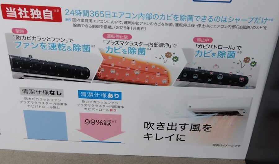 また独自の空気浄化技術「プラズマクラスター」をエアコン内部に充満させる、「プラズマクラスター内部清浄」や「カビコントロール」機能を進化させた。