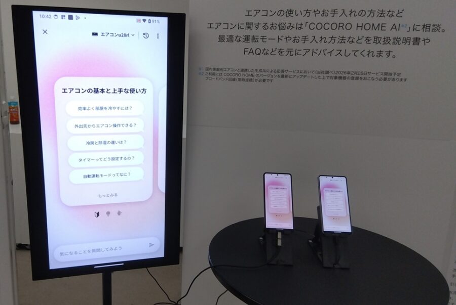 さらにエアコンで初めて生成AIサービスにも対応。スマートフォンなどで、「COCORO HOME」アプリ内の「COCORO HOME AI」から使用が可能だ。