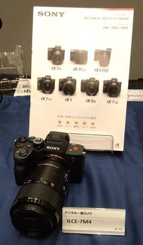 ブースでは、ベーシック機である「α7 Ⅳ」を展示。有効約3300万画素のフルサイズ裏面照射型CMOSセンサーを搭載。フラッグシップモデルでも採用されている画像処理エンジン BIONZ XR(ビオンズ エックスアール)を搭載することで、撮像や各種信号処理の実行など処理能力が高く人気の機種。