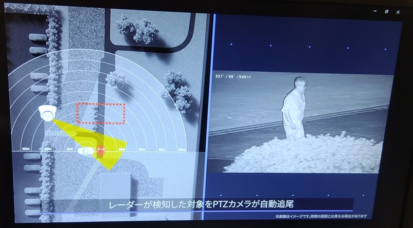 監視用ミリ波レーダーは、気象レーダーや自動運転システムでも使用されている電磁波(ミリ波)を照射し、カメラや赤外線センサーが苦手とする雨、霧などの悪条件下でも特定範囲内の物体を検知できる。異常を検知した際には、検知された物体の場所を接続されたクライアントPCの地図上に表示する。