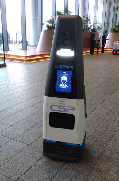 シースパークスは。施設内を自律走行し、搭載されたセンサーやカメラで警戒・監視を行い、警備員へ情報を通報する最新の警備ロボット。広い施設を警備員と警備ロボットが連携することで、警備品質の均一化や警備高度化を実現できる。