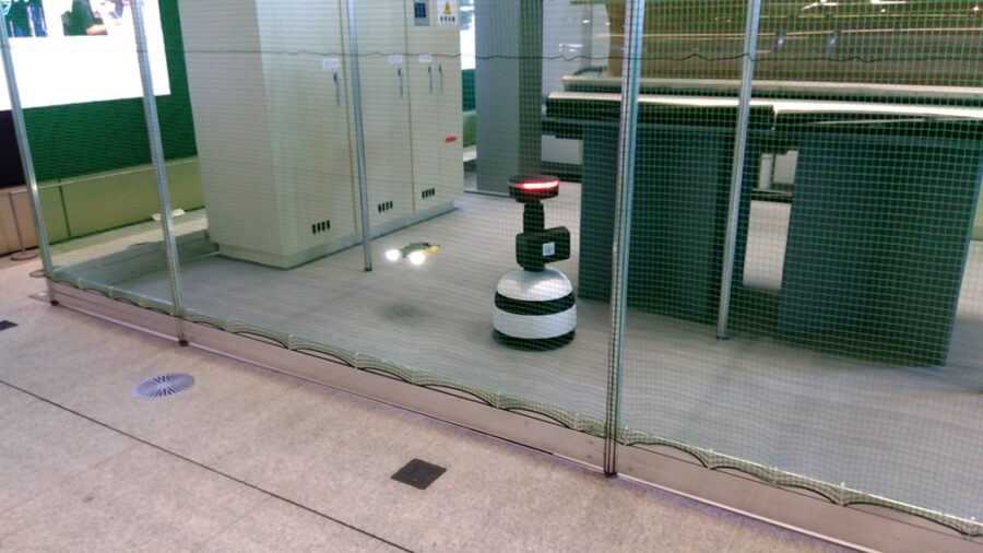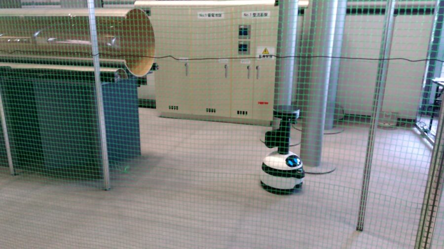 ユーゴーミニは、屋内施設において遠隔操作により巡視や点検を行うロボット。狭い通路や障害物が多い環境でもスムーズに移動することができる、また伸縮する4Kカメラを搭載しており、高所や広範囲の撮影や確認もできる。
