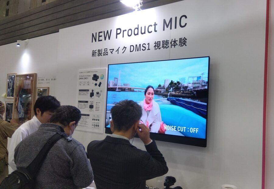 昨日発売となった小型・軽量、オールインワン型 高音質デジタルガンマイクロホン「DMWーDMS1」も展示され、来場者の注目を集めていた。商品特長は下記のとおり。