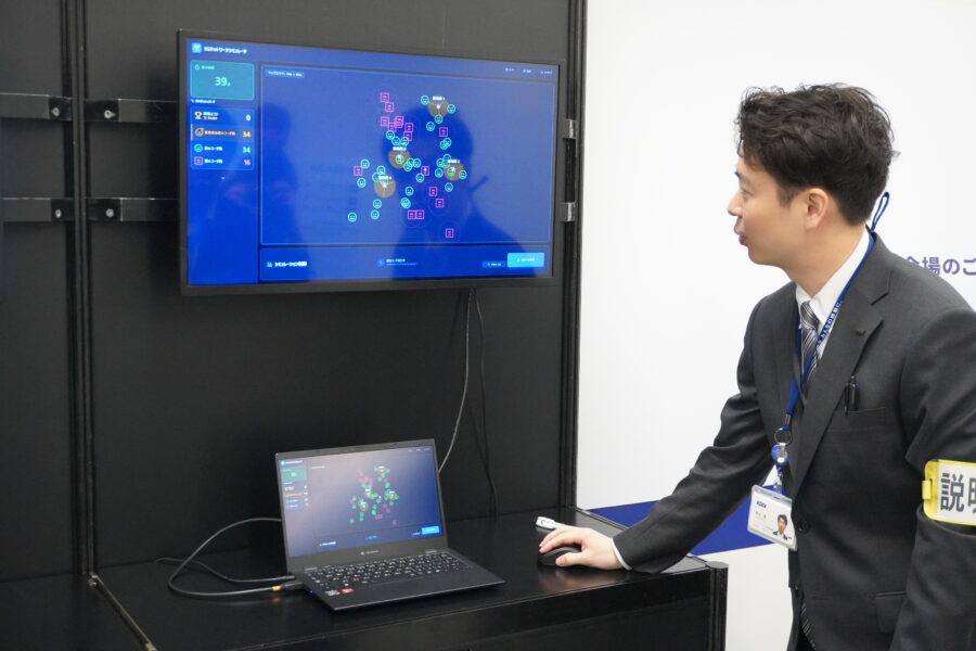 同技術では、複数の基地局の複雑な設定を最適化するため、従来の集中型AIよりも効率的な分散型AIを導入。このAIは現場の状況を学習・推論することで、通信エリアの質を劇的に改善し、低速エリアの減少を実現した。これにより先行して導入したエリアでは、通信品質の安定性については25%改善、最適化に要する作業期間については95%短縮を実現させたという。ブースでは、アンテナの角度を調整して通信品質を向上させるプロセスをゲーム形式で示し、人間や旧来の技術を上回る精度を強調。最終的に、作業の自動化による運用コストの削減と、ユーザーの満足度向上を両立させるビジョンを示した。