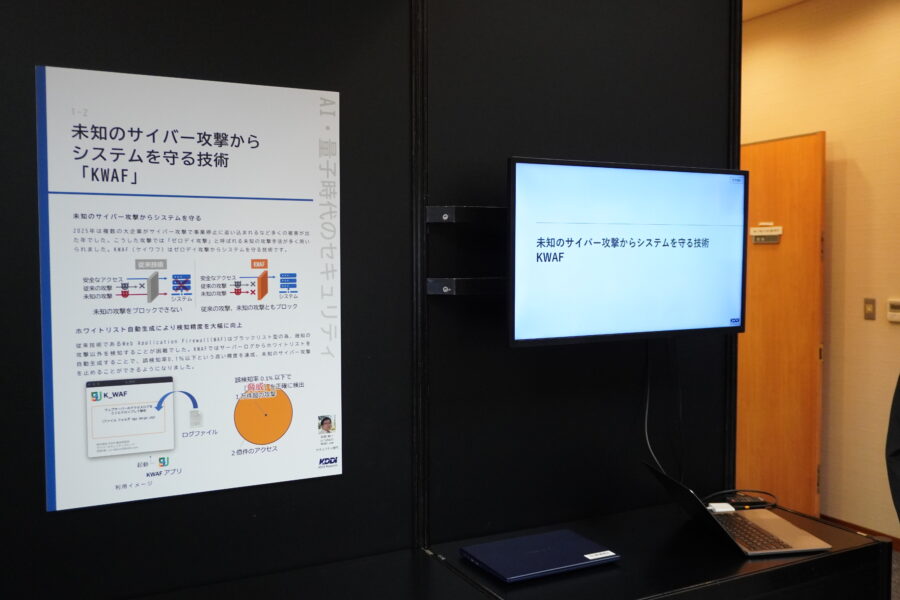 KWAFは、ホワイトリストを自動生成し、従来の対策では防げなかった未知のゼロデイ攻撃を高精度で遮断する。2025年は複数の大企業がサイバー攻撃で事業停止に追い込まれるなど多くの被害が出たが、こうした攻撃では「ゼロデイ攻撃」と呼ばれる未知の攻撃手法が多く用いられたという。従来技術であるWeb Application Firewall(WAF)はブラックリスト型の為、既知の攻撃以外を検知することが困難だったが、KWAFではサーバーログからホワイトリストを自動生成することで、誤検知率0・1%以下という高い精度を達成、未知のサイバー攻撃を止めることができるようになったとしている。