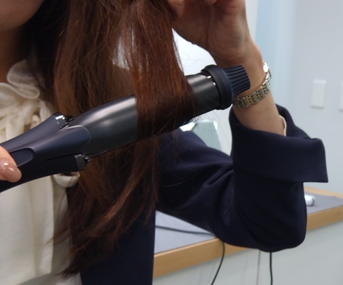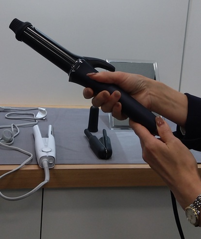 商品特長は、操作性に着目し「挟む、巻く、回す」といったスタイリング動作にそって設計した「人間工学フォルム」を採用したこと。ハンドル部は、下部が円形で上部にかけて徐々に角を立ち上げることで、握りやすい形状に設計。レバーには、指にフィットする凹みを設けて繊細な力加減がしやすくなるよう操作性を向上させた。プレート前面には効率よく熱が伝わり、すべりやすさが従来機比約20%向上した「ダイヤモンドコーティング」を採用し、摩擦ダメージを低減しながらリッジある美しいカールへと導く。またクリック音が鳴る「ワンカールモード」を搭載し、音をホールド時間の目安とすることで、巻き時間のムラを抑えること、左右対称の美しいワンカールを作ることができる。