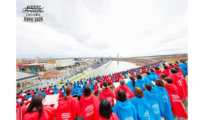毎日放送が毎年12月に開催している「1万人の第九」は、ベートーヴェンの第9交響曲・第4楽章を1万人で合唱する一大イベント。これを「EXPO 2025 大阪・関西万博」の開催に合わせ4月13日、万博会場で開催された。
