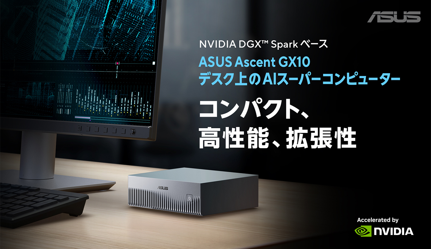 ASUS、パーソナルAIスーパーコンピューター「Ascent GX10」を発表。NVIDIA GB10 Grace Blackwell Superchipを搭載し、ペタフロップ級AI演算性能を実現