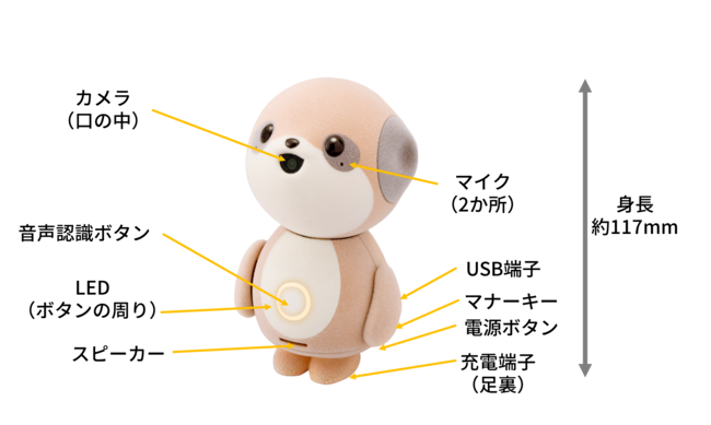 第一弾となるミーアキャットをモチーフにしたロボットとスマートフォン用のアプリがいよいよ登場。ロボットは身長約117mm、体重約194gの手のひらサイズで、身振り手振りや虹色に光るお腹のランプで感情を表現します。アプリとの連携により、会話や記憶が途切れることなく、“あなた”との関係を深めていきます。充電ができる卓上充電ホルダーもあわせて発売(※2)するほか、故障や水没など、もしものときに修理料金を割引するケアプラン(※3)も用意します。大切なパートナーとなる「ポケとも」と、安心して長期間一緒に過ごせます。