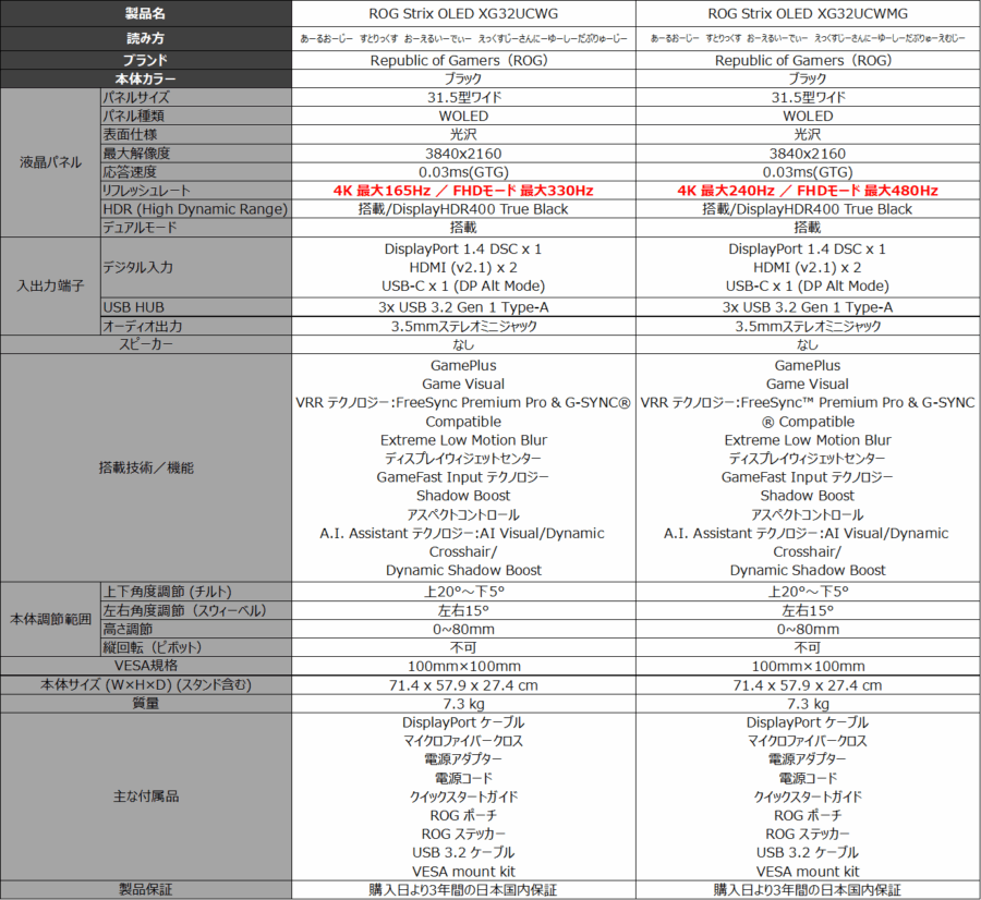 •製品名:ROG Strix OLED XG32UCWMG / ROG Strix OLED XG32UCWG
