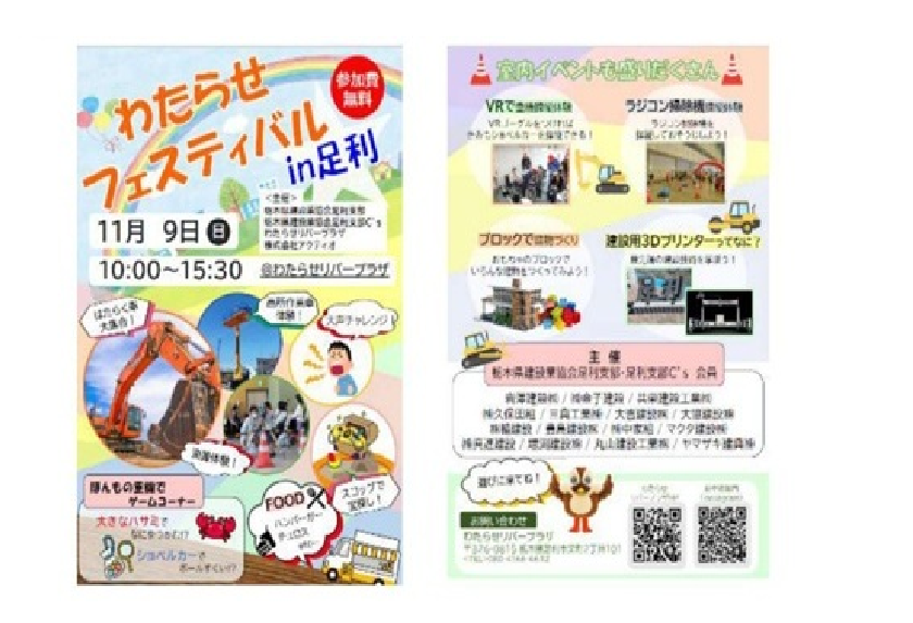 アクティオ(本社:東京都中央区日本橋、代表取締役社長兼 COO:小沼直人、以下アクティオ)は、2025年11月9日(日)に栃木県足利市にある「わたらせリバープラザ」で開催される「わたらせフェスティバル in 足利」に出展しますと発表した。