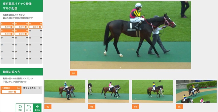 ※FireTVの場合は最大4頭、パソコン(ブラウザ)の場合は最大5頭のパドック映像を 同時視聴が可能です。