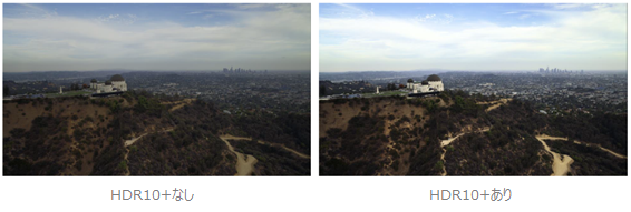 HDR10+を適用すると、シーン毎やフレーム毎に付加される動的メタデータの活用によって、様々な性能のディスプレイで、クリエイターの意図を維持した表示が可能になります。