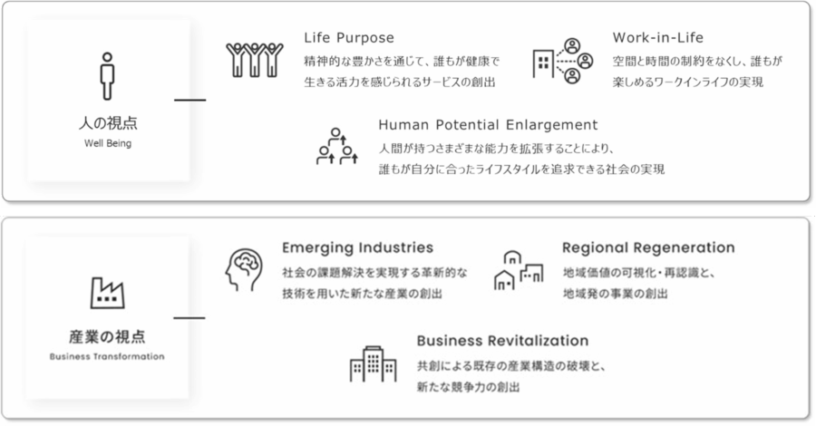 「Canon Marketing Japan MIRAI Fund」は、Well Being(ウェルビーイング)、Business Transformation(ビジネストランスフォーメーション)の2分野を投資領域としています。