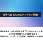 会場は、日本最大級のオープンイノベーション拠点「STATION Ai」(愛知県名古屋市)内のテックラボ。現役生とOBOGが入り混じり、知恵と技術をぶつけ合う特別な2日間。