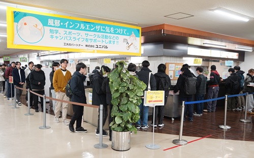 近年、食料品価格や外食費の高騰が続くなか、学生の昼食代は大きな負担となっており、学生生活にも大きな影響が生じています。東北工業大学では、「せめてこの日は、値段を気にせず温かい食事をとってほしい」という思いから、2022 年より学生食堂企画「100 円カレーDAY」を実施しています。毎回およそ700名の学生・教職員が利用し、学生からも高い支持を得ている取り組みです。