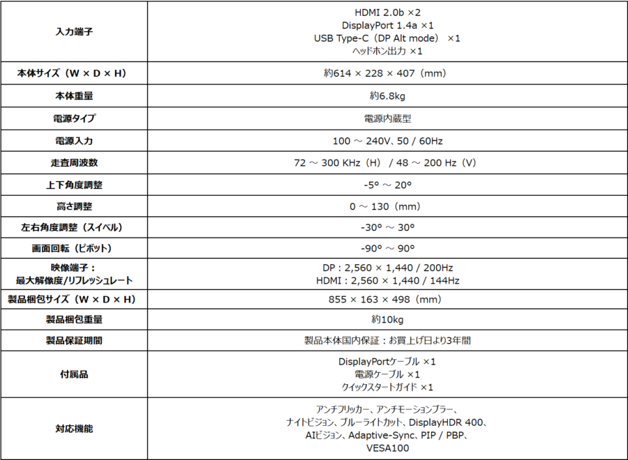 DisplayHDR 400対応
