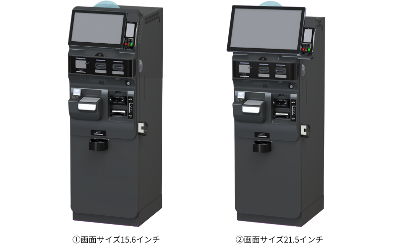 設置環境に合わせ、2種類の画面サイズ(15.6インチ/21.5インチ)を用意。筐体強度の向上に加え、複数台のIPカメラで本人確認や取引監視などセキュリティを強化した。2種のICカード発行に対応し、客室のみならず大浴場などの施設利用までスムーズに連携させた。