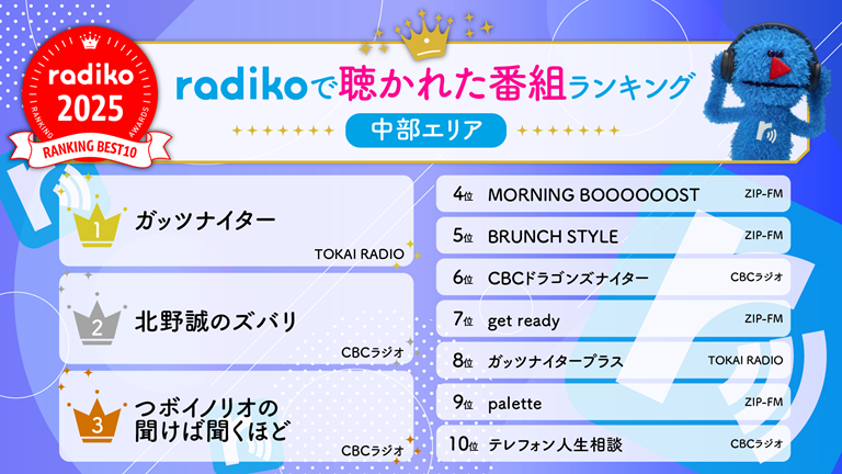スマートフォンやパソコン等でラジオやポッドキャストが聴ける無料サービス「radiko(ラジコ)」を提供する株式会社radiko(代表取締役社長:池田 卓生、所在地:東京都港区)は、2025年radikoで聴かれたラジオ番組・音楽を振り返る年間ランキングを発表した。